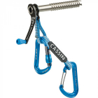 The Rocket Plus uses an integrated Dyneema sling to eliminate the need for a quickdraw. With a Nano 22 or a Photon Wire carabiner, it is one of the lightest ice screws in the world and has the benefit of being able to be placed and removed while clipped to the rope. The fixed Dyneema sling has two loops for easy operation. The top loop is for racking and short fixing at anchors and the bottom loop is designed to be pre-equipped with a carabiner. The chromoly steel construction is lightweight, strong and durable. The patented front teeth have been engineered for the fastest placements even in the coldest, most compact ice. Reverse angle threads ensure smooth driving and maximum holding power.